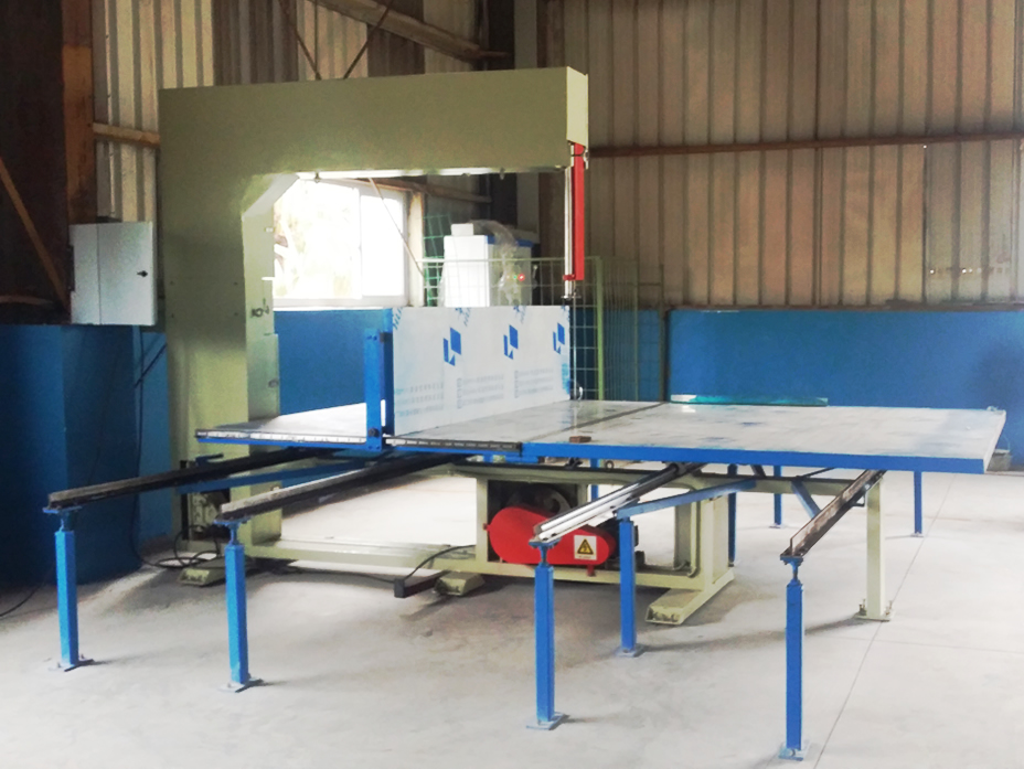 用于再次加工,平切機切割好的海綿片材,在豎直方向切割。